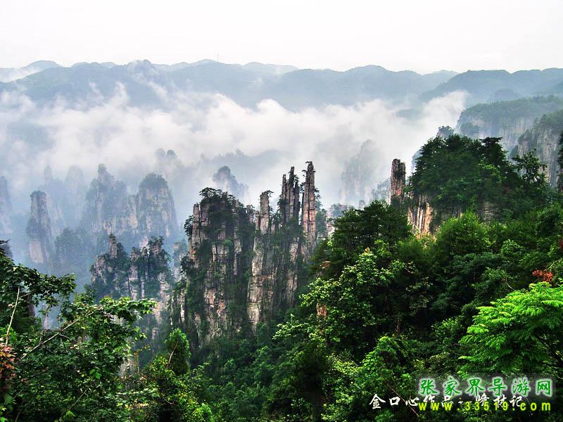張家界國(guó)家森林公園,2004年被列入世界地質(zhì)公園,其間有奇峰3000多座,這些石峰如人如獸、如器如物,形象逼真,氣勢(shì)壯觀。