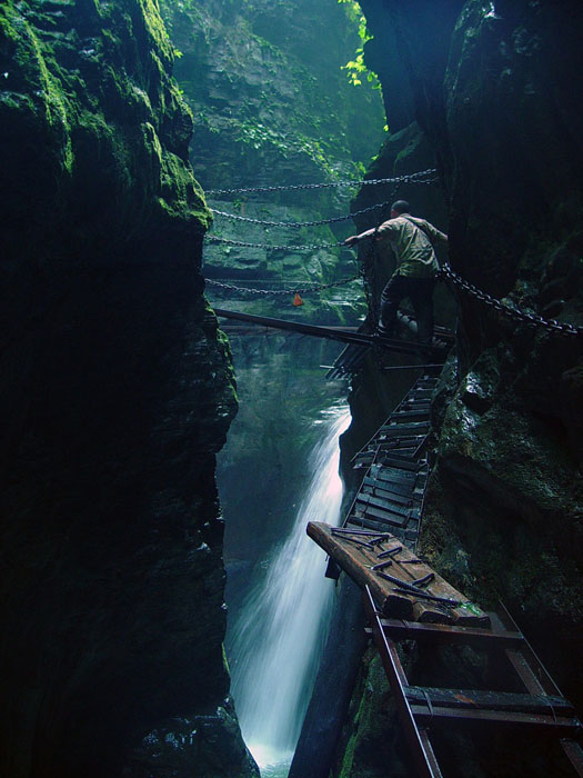 坐龍峽擁有中國第一條特種游道。所有游道均建于峽谷深處,依山取勢,既經(jīng)細(xì)心雕琢聽卻又渾然天成。粗樸的板栗木棧道,可以讓你零距離的親近那一潭碧幽、聽聞山泉叮咚;精巧的跳墩,可以讓你媳戲流泉、觸感溪瀑;原質(zhì)的石坎道,讓你不得不調(diào)動全部的身心能量悉心攀援、感悟峽谷;有驚無險的鐵梯,讓你伴著腳下轟鳴的溪水,在驚怵中體味一份快慰。 出口出的土家山寨,保留了古樸獨特的生活習(xí)俗。一塊臘肉就一口醇香的“苞谷燒”會讓你洗去所有的疲憊,在輕松中憨厚的主人向你講述過去強人出沒的故事......