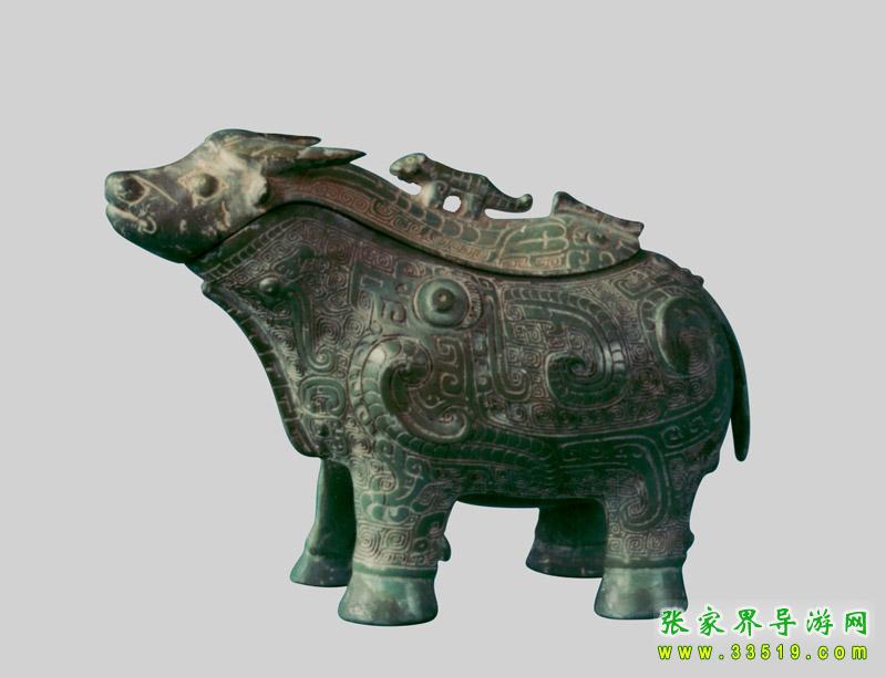 展出有商周時(shí)期至明清時(shí)期的各類文物100余件,其中包括:禮器、兵器、量器以及古人在日常生活中所使用的各類生活器具,是研究和了解衡陽(yáng)先民在這塊土地上繁衍生息的最生動(dòng)的教材;也是研究當(dāng)時(shí)衡陽(yáng)處于楚越兩大文化相互生存和融合的最好的實(shí)物資料。如國(guó)寶動(dòng)物紋青銅提梁卣、越式鼎、楚式青銅劍等等。在180平方米的展室中陳列了青銅精品90余件。其中以春秋動(dòng)物紋提梁卣最具魅力。與它相媲美的商代青銅牛尊,工藝之精湛,美侖美奐。