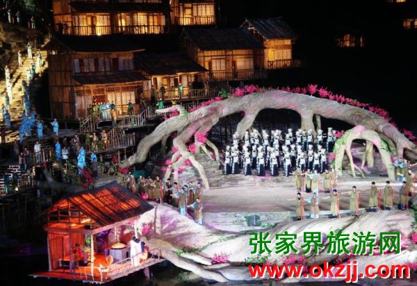 通過音樂、歌舞、魔術、雜技、影像等表演形式,融入湘西民族特色,演繹一出古老的傳奇愛情故事和奉獻魔幻視覺盛宴。