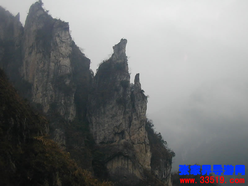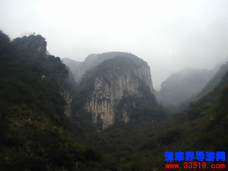 南天門——沿著河水一直往里走,在溪水最深處,可以仰望那隱藏在云霧里的南天門。它并不同于天門山天門。它獨(dú)立于眾山之中,就像真正的通天大門,當(dāng)你翻過(guò)了前面的天門,卻還要再通過(guò)這座南天門,方可真正羽化登仙。南天門旁邊的幾座山峰,也都生的奇形怪狀,倒也天然形成了一個(gè)個(gè)大大小小的自然景觀。宛如天兵天將般守衛(wèi)南天門的將軍巖,象征南天門仙家氣息的蠟燭峰等,散落在四周,構(gòu)成了一個(gè)整體的山體奇觀。