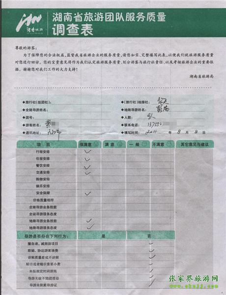 2011年8月8日黃小姐一行9人旅游質(zhì)量反饋
