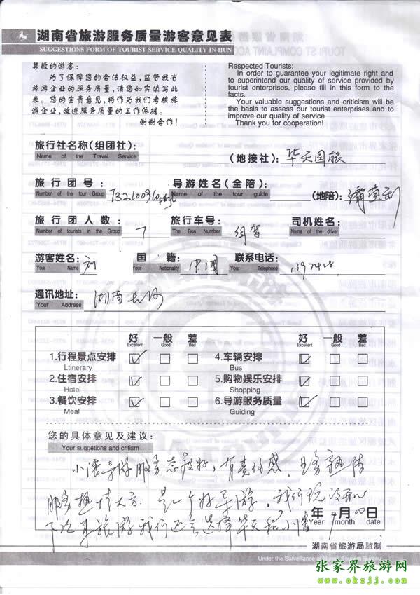 - 游客夏先生為表揚導(dǎo)游李姣姣寫來表揚信致我張家界... [14811]
