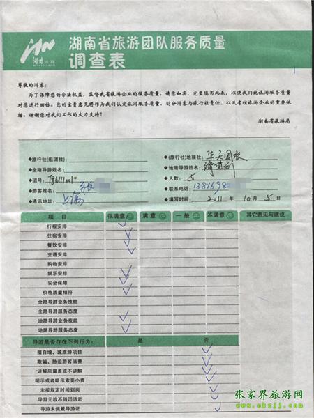 2011年10月5日張先生一行5人旅游質(zhì)量反饋