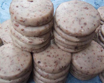 糯米洗凈,泡上一個(gè)對時(shí)后,濾干后用甑子蒸熟。然后把糯米飯盛在粑槽內(nèi)用錘打爛,再捏成大小均勻的坨子,壓薄成形,這便是糍粑。待成形的粑陰干后,泡在壇子里,十天半月?lián)Q一次水。這樣,可以放到端午節(jié),經(jīng)久不壞。 ■社飯