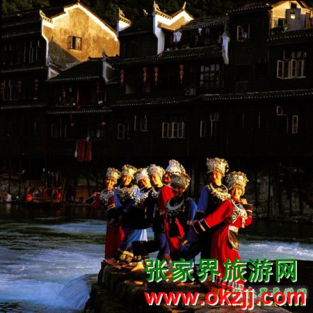 金鞭溪因流經(jīng)金鞭巖而得名,全長5710米,穿行于絕壁奇峰之間,溪谷有繁茂的植被,溪水四季清澈,被稱為“山水畫廊”、“人間仙境”。有詩贊曰:“清清流水青青山,山如畫屏人如仙,仙人若在畫中走,一步一望一重天”。途中你會(huì)看到點(diǎn)歌臺(tái),那里有土家姑娘時(shí)刻準(zhǔn)備為游人唱民族歌曲,只要付十元錢她們就會(huì)為你引吭高歌,當(dāng)然,如果你不想花這個(gè)錢,也可以在一邊聽聽別人點(diǎn)的歌,聽完后走人。